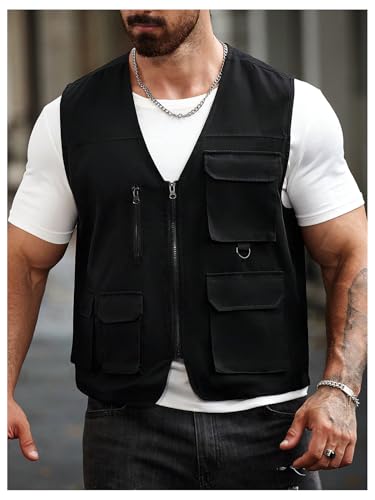 • Features: Lightweight utility vest for men with multi pockets, zipper front closure, sleeveless jacket, solid color, outdoor travel vest