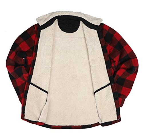 • DESIGN: Mens winter plaid flannel jacket with Full front button closure, button closure cuffs, Faux fur lining, two chest pockets, two hand pockets, sherpa lined collar and cuffs, Classic flannel design.