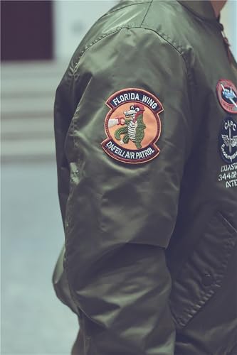 • FEATURES: This pilot jacket features a ribbed stand-up collar, cuffs, and hem, which are windproof and warm; a full zipper closure for easy on and off; and two flap side pockets and an arm pocket for convenient storage. The embroidered patches on the front, and arms show the motorcycle style of the MA-1, creating a stylish military look.