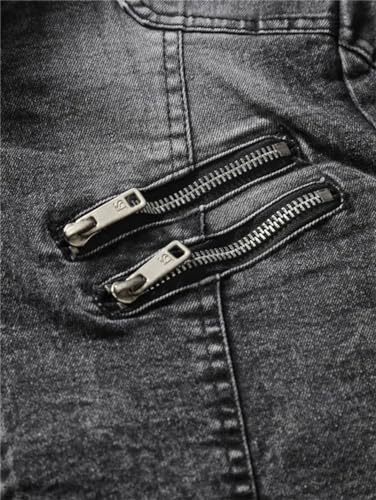 Men Motorcycle Denim Jacket Men Retro Zippers Stand Collar Denim Coats 4