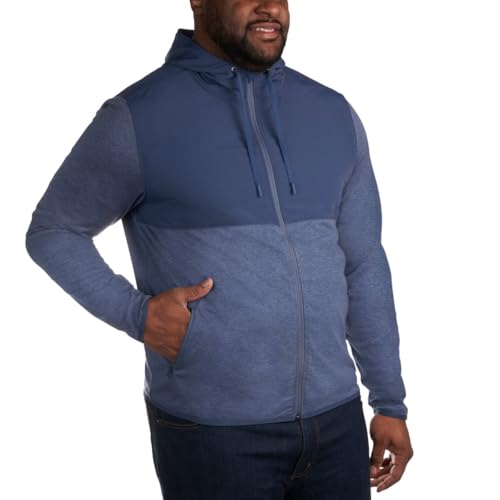 HOT ! KIRKLAND Men's Mixed Media Jacket, Woven and Knit Fabric, Drawcord Hood, Zippered Pockets, Blue, Large