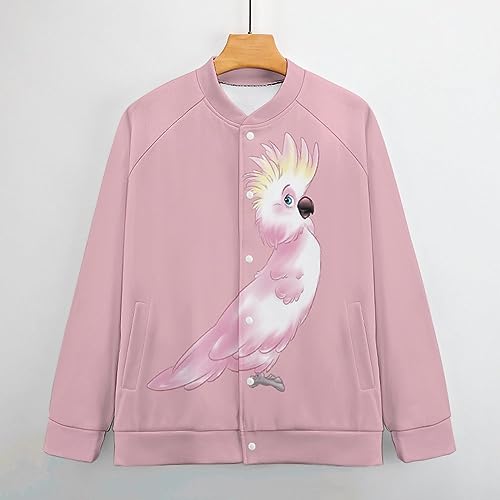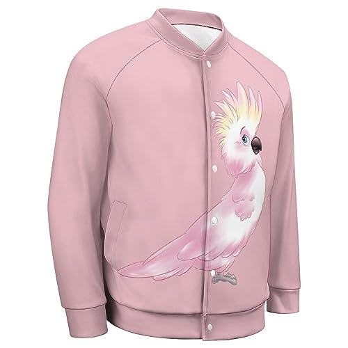 HOT ! Pink Cockatoo Parrot Men‘s Baseball Jacket Long Sleeve Casual Coat Bomber Jacket Unisex Streetwear