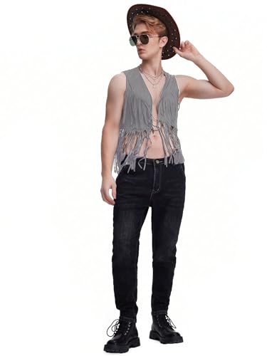 Men's Fringe Open Front Sleeveless Jacket Vest Party Club Outerwear 7