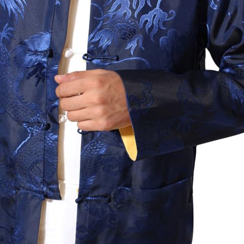 Two-Sided Chinese Men's Jacket - Traditional Martial Arts Kung Fu Dragon Pattern Uniform Long Sleeve Clothing for Men 4