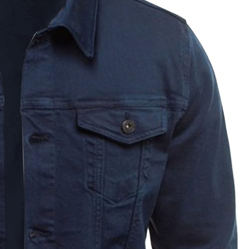 Men's Casual Classic Denim Jacket Slim Fit Fashion Jean Coat (navy,Large) 6