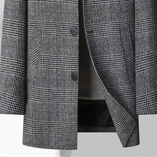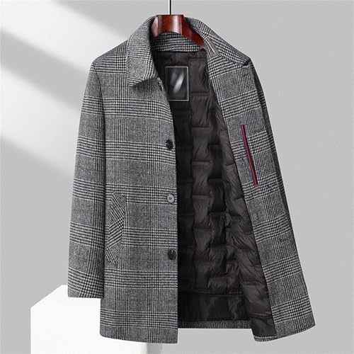 More information about Mens Winter Quilted Trench Coat Lapel Single Breasted Wool Blend Pea Coat Chunky Warm Mid Long Business Overcoat