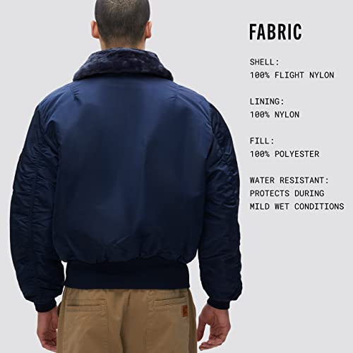 • 100% Flight Nylon: The B-15 Flight Jacket is constructed with a 100% mid-weight flight nylon shell. It also features a removable synthetic mouton fur collar and button tabs that were once used to secure oxygen masks and headset wires. Dry clean only.