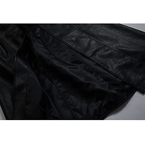 Men's 70s PU Leather Trench Coat Long German Style Punk Motorcycle Jacket Black Fuxs Leather Zipper Coat 5