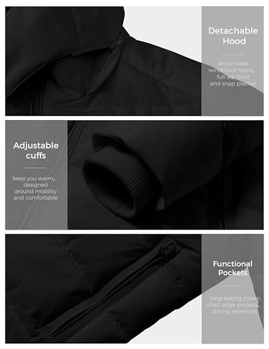 wantdo Men's Waterproof Puffer Jacket Warm Winter Coat Thicken Parka Jacket with Removable Hood (Regular and Big Size) 7