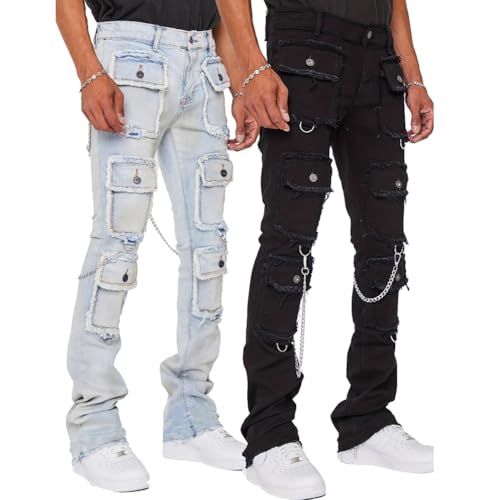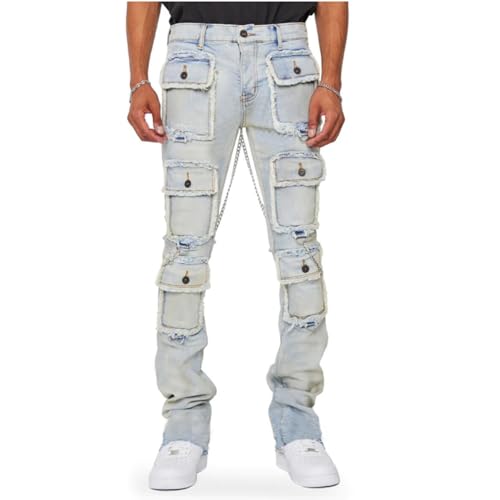 More information about Straight Leg Cargo Jeans for Men Slim Fit Vintage Denim Pants with Multi Pockets