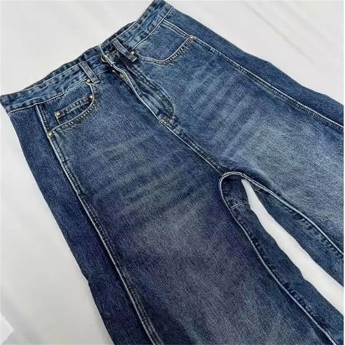 Men's High Street Wave Jeans, Punk Summer Style, Blue Denim, Undulating Straight Leg Trousers 4