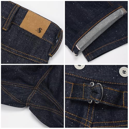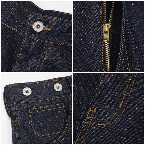 • The raw selvedge denim jeans will develop natural fading and traces of time after being worn for a long time