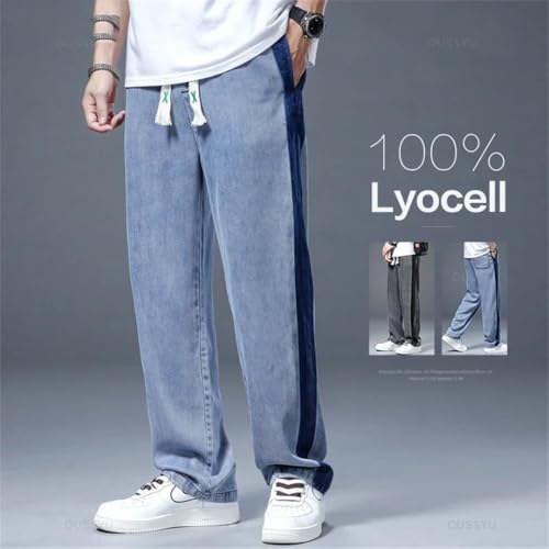 HOT ! Men Streetwear Baggy Jeans Fabric Straight Wide Pants Thick Korean Trousers Blue L