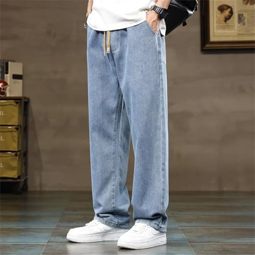 HOT ! Men Straight Leg Loose Drawstring Jeans Streetwear Wide Denim Pants Baggy Harajuku Trousers