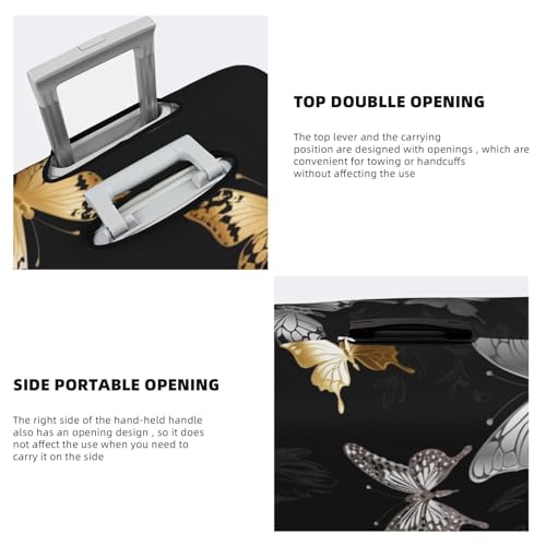 Gold White Butterflies Black Travel Luggage Cover Elastic Washable Suitcase Protector Anti-Scratch Travel Suitcase Cover Luggage Protector Fits 18-32 Inch Suitcase 4