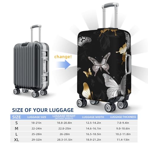 Gold White Butterflies Black Travel Luggage Cover Elastic Washable Suitcase Protector Anti-Scratch Travel Suitcase Cover Luggage Protector Fits 18-32 Inch Suitcase 1