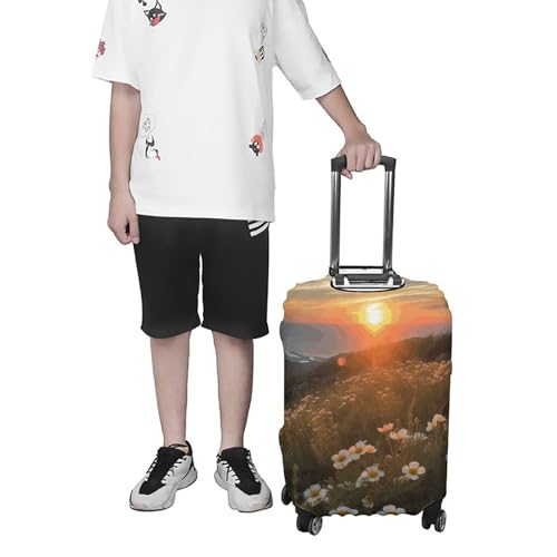 Sunset And Flowers Luggage Cover Dustproof Suitcase Cover Elastic Washable Travel Luggage Protector Suitcase Protector Stretch Baggage Protector for 19-32 Inch Luggage S 7