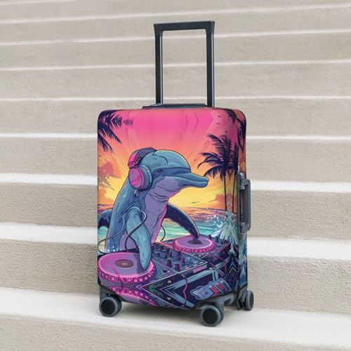 VOSERY Travel Luggage Cover - Hip-Hop DJ Dolphin Washable Suitcase Covers Protector Fits 18-32 Inch Luggage 1