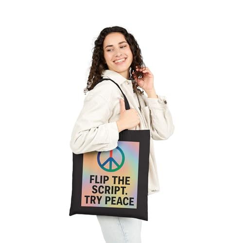 • Features a vibrant peace symbol and the empowering phrase: “Flip the Script. Try Peace.”