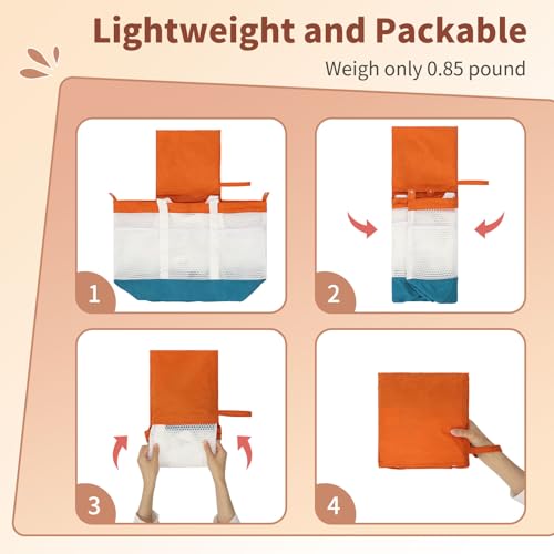 Mesh Beach Bag, Extra Large Beach Bags for Women, Lightweight Foldable Sandproof Tote Bag for Family & Vacation 5