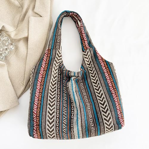 HOT ! Bohemia Tote Bag, Canvas Shoulder Bag for Women, Large Capacity Work Bag,Reusable Canvas Lunch Bag Teacher Bag Shopping, Utility Aesthetic Handbag(Gray)