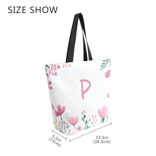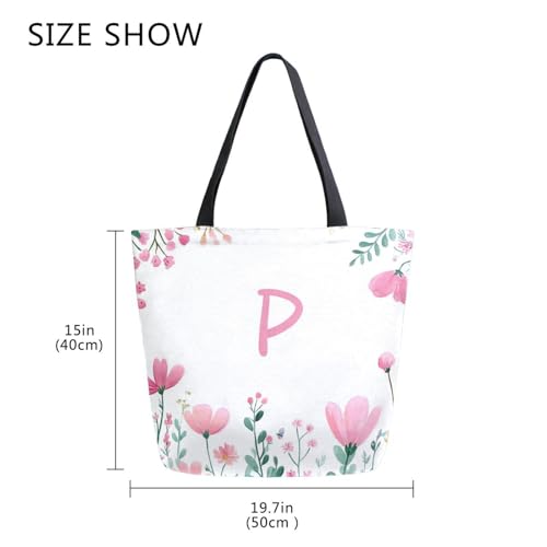 HOT ! Extra Large Shoulder Tote Bag for Beach Travel Gym Wildflowers Pink Flowers Reusable Grocery Canvas Shopping Bag