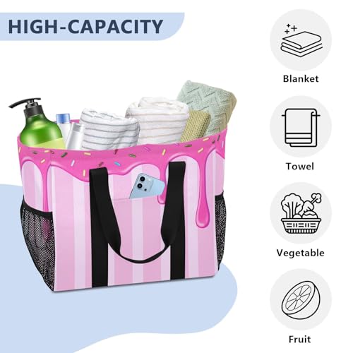 HOT ! Candy Dripping with Sprinkles Reusable Grocery Bags Large Tote Bag Waterproof Canvas Organizer for Beach Picnic Laundry Travel