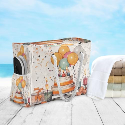 Happy Birthday Pattern Beach Bag & Travel Tote Bag Large Sandproof with Zipper Closure, Wet Pouch for Swim Gym Travel 6
