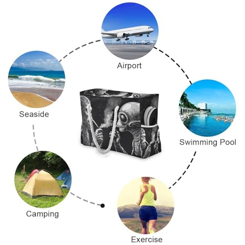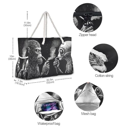 Beach Bag Alien Sasquatch Fun for Women Large Beach Tote Bag with Zipper for Travel Vacation 4