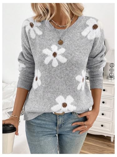 • Lightweight sweaters for women, long sleeve, crew neck, floral pattern, drop shoulder, and knitted, show you charming