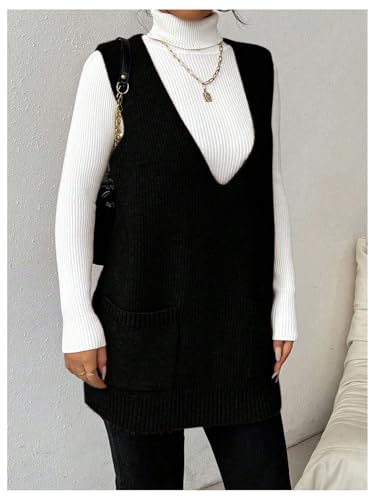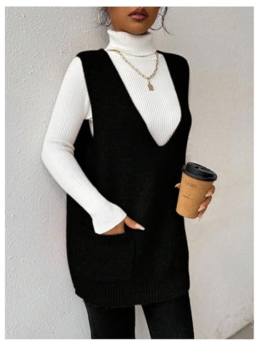 • Features: long sweater vest, v neck sweater vest for women, sleeveless, with pockets, loose-fit