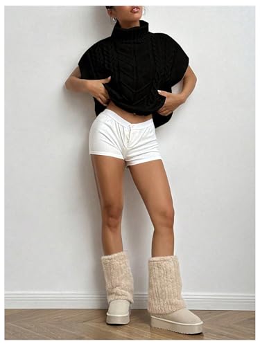 MakeMeChic Women's Turtleneck Cable Knit Sweater Vest Tops Short Sleeve Pullover Top 6