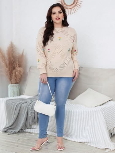• Features: Plus size sweaters for women, crew neck, long sleeve, floral embroidery, eyelet hollow out, knitted, high-stretch, cute and vintage. The embroidered sweater comes with a few flowers, that gives it feel spring-like.