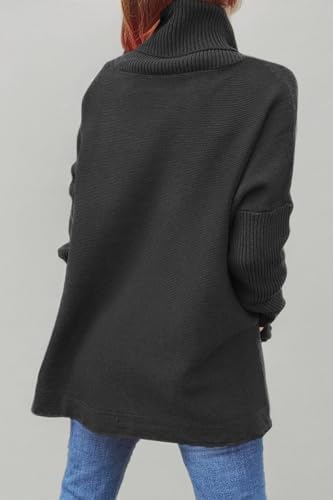 yoeasy Women's Turtleneck Oversized Long Batwing Sleeve Pullover Sweater Spilt Hem Knit Sweater 3