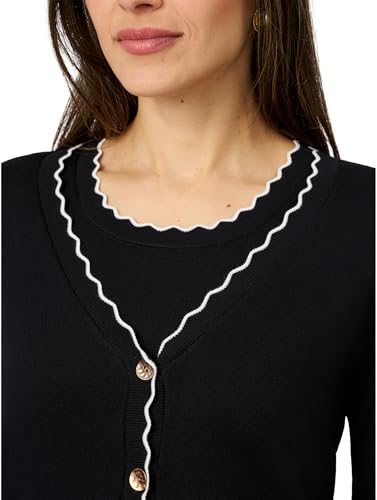 Cable & Gauge Women’s ¾ Sleeve Cardigan Twin Set, Scallop Trim, Black and White 1