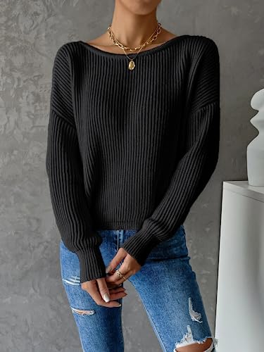 More information about Labolliy Women Twist Back Backless Drop Shoulder Long Sleeve Pullover Rib Knit Sweater Tops