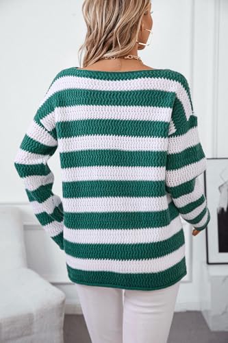 HOT ! Womens 2025 Long Sleeve Crew Neck Striped Sweater Casual Loose Color Block Pullover Knit Jumper Tops