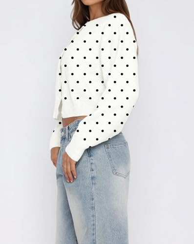 HOT ! Cioatin Women Polka Dot Knit Button Down Crop Cardigan - Cute Y2K Aesthetic Open Front Sweater Pullover Girl Fall Outfits