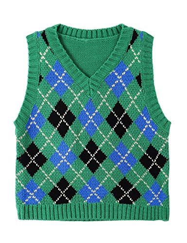Women's Y2K Argyle Plaid Knitted Sweater Vest V Neck 90s E-Girls Preppy England Style Knitwear Tank Tops 6