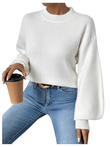 HOT ! SweatyRocks Women's Mock Neck Pullover Sweater Lantern Long Sleeve Ribbed Knit Sweater