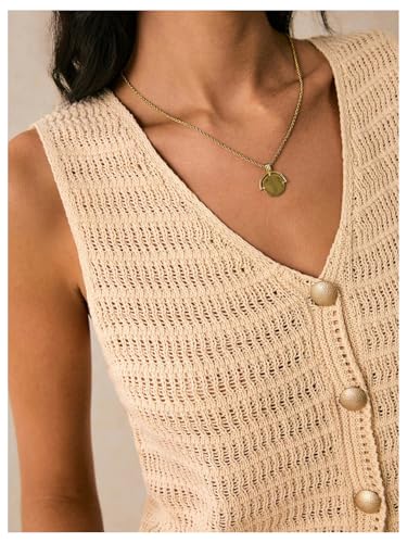 MakeMeChic Women's Sleeveless Crochet Sweater Vest V Neck Button Down Cardigan Knit Tops 6
