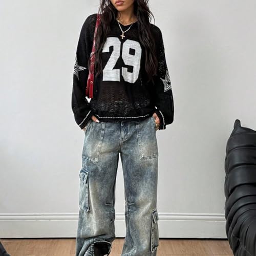 • Jersey-Inspired Statement: The number 29 graphic gives this crochet pullover sweater a jersey shirt vibe blending sport jersey for women style with a fresh oversized graphic tee silhouette for everyday wear