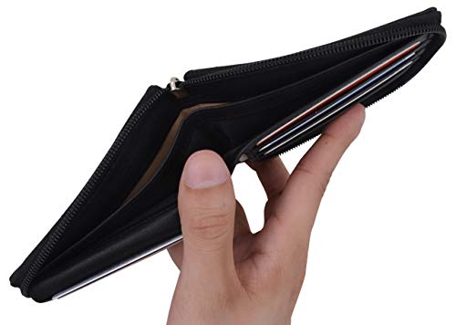 Men's Zipper RFID Blocking Premium Leather Zip-Around Credit Card ID Bifold Wallet With Gift Box 7