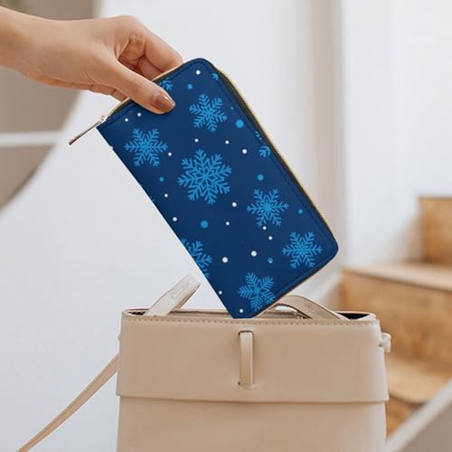 HOT ! Leather Wallets for Men Women, Slim Credit Card Holder Compartment, Multi-Layer Inner Zip Christmas Snowflake Blue Wallet