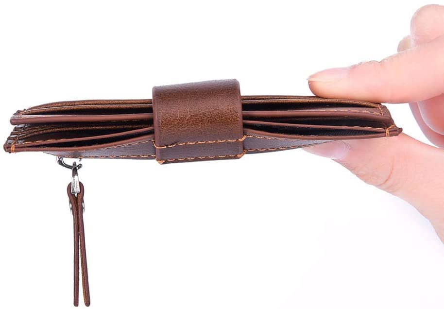 More information about Men's Small Card Holder, Driver's License Bag, Short Frosted Leather Zipper Card Holder Wallet-Card Holder Light
