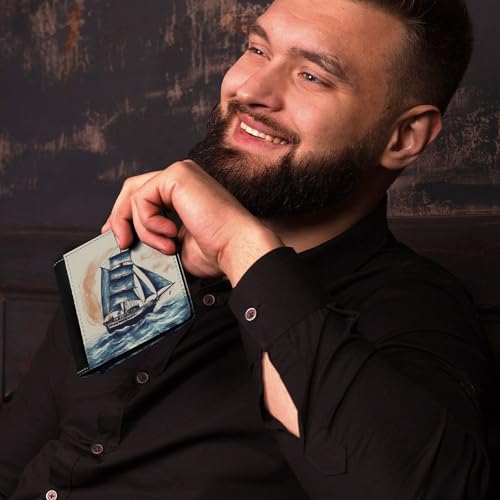 HOT ! Men's Leather Wallet Bifold Wallet for Men Nautical Sailboat Slim Wallet with Multiple Card Classic Passcase Mens Card Holder