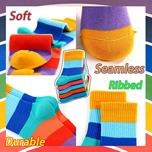 HOT ! Kids Crew Socks - Seamless Rainbow Stripes for Boys Girls - Cotton Athletic Unisex Cute Fun Boot Socks - 5 Pairs