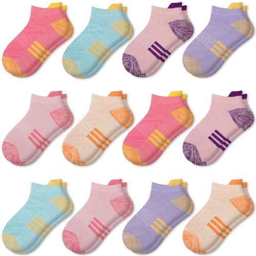 Comfoex 12 Pairs Girls Athletic Ankle Socks for 4-6 6-8 8-10 Years Old - Cotton Short Socks for Little Big Kids 6