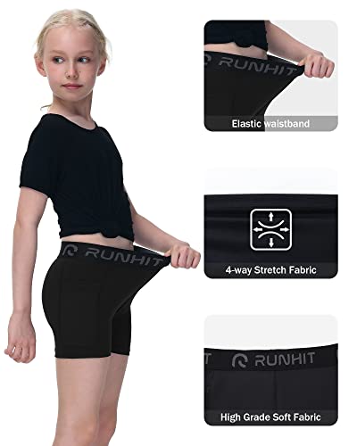 Runhit 4" Youth Girls Volleyball Shorts Spandex Girls Compression Shorts Biker Dance Kids Gymnastics Shorts with Pockets 4