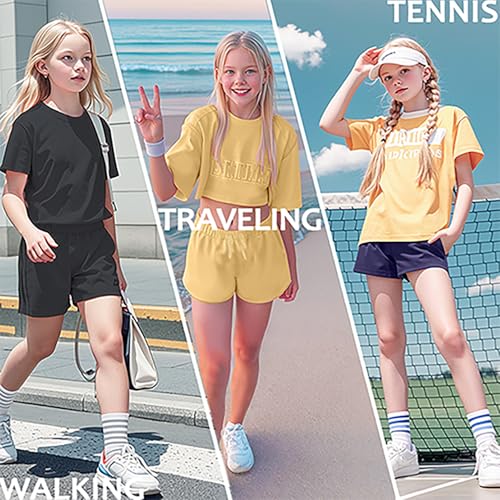 • Size Guide:Our girls shorts are available in sizes XS (3-4T), S (5-6), M (7-8), L (8-10), and XL (11-12), ensuring a comfortable fit for children of all sizes. Offered in a variety of vibrant colors including Green, Red, Yellow, Black, and Navy Blue, these shorts are designed to elevate any active wardrobe. Offering multiple colors in one set, these athletic shorts for girls provide endless styling options for your active little one.